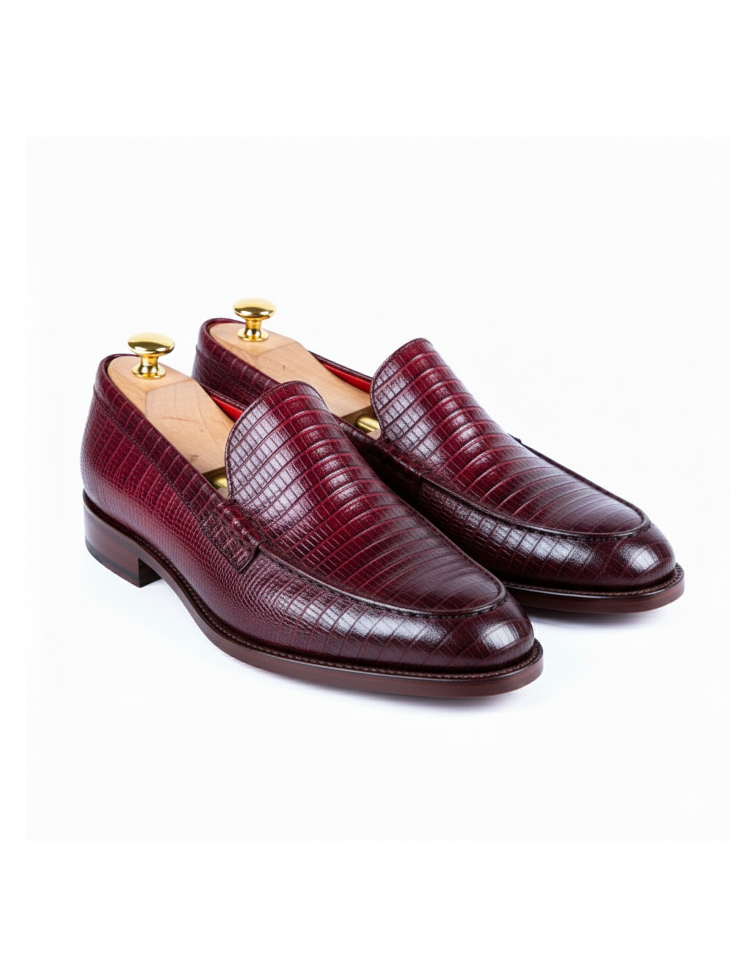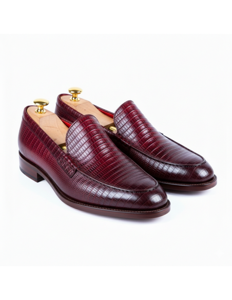 Zapatos en piel Box calf imitacion serpiente color burdeos serpiente.