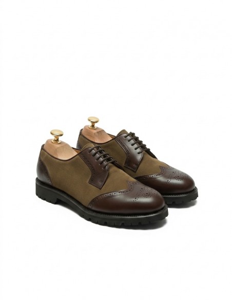 Zapatos en piel vegetal color marrón y afelpado color marrón claro (color arena).